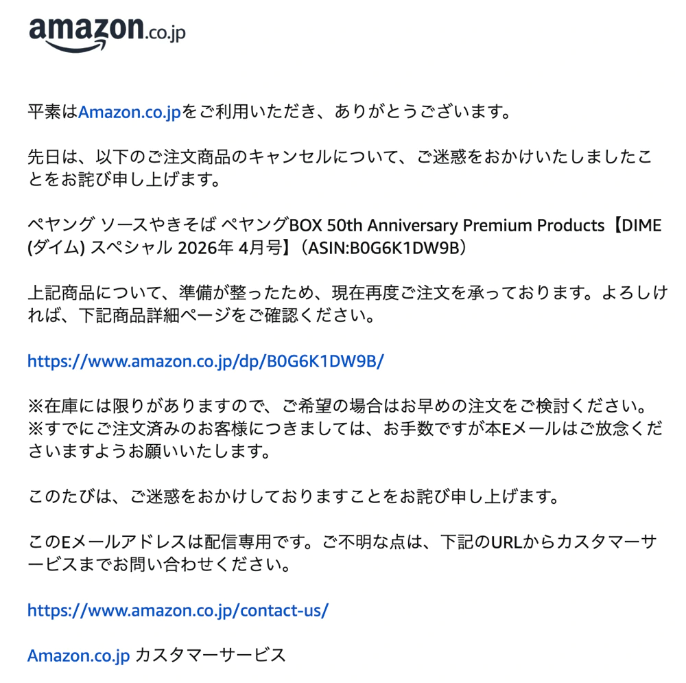 どうやらステンレスペヤングが再入荷したので、よかったらどうぞ的なお知らせでした。