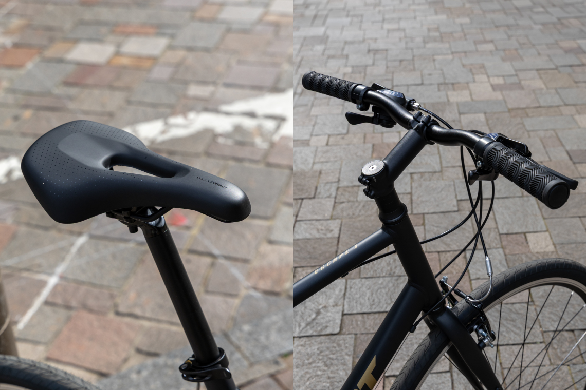 ESCAPE X3はサドルに穴が空いていたり、タイヤの厚み含め最新トレンドを取り込んでいる面も。